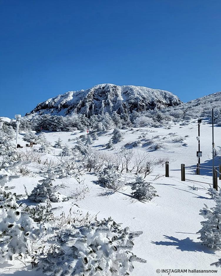 Hallasan National Park, a must-visit destination in winter Jeju, offers breathtaking snowy landscapes and the grandeur of nature. The Hallasan Snow Flower Bus allows travelers to enjoy the snowy scenery of Hallasan conveniently, making it a popular choice for winter visitors. With iconic sites like Baengnokdam and snow-covered forest trails, the park provides picture-perfect views.